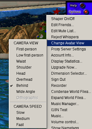 - Options > Change Avatar View.